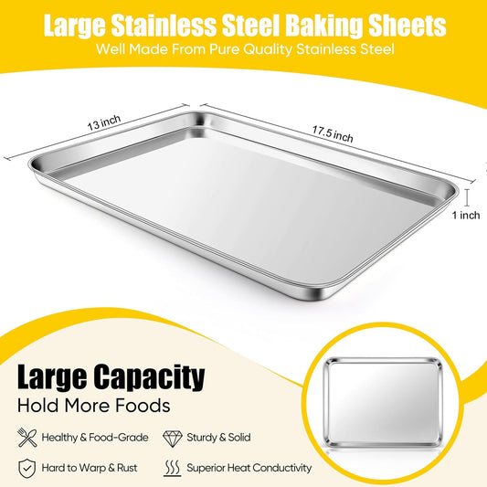Homikit 2 Pack Baking Sheet, 18” x 13” Stainless Steel Large Cookie Pan Set for Oven, Heavy Duty Metal Half Sheet Baking Tray for Roasting Cooking, Nonstick & Rust Free, Dishwasher Safe