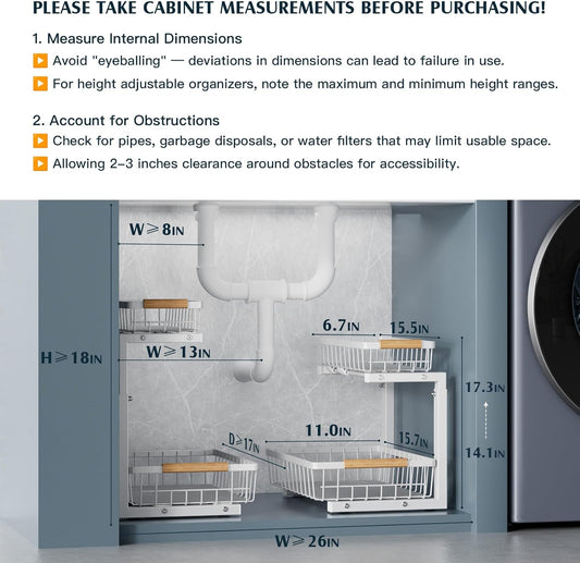 2 Pack Under Sink Organizers and Storage, Height Adjustable Under Sink Storage, Under Cabinet Organizer, Metal 2 Tier Pull out Cabinet Organizer, Bathroom Organizers and Storage, White