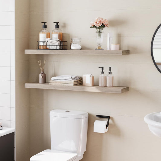 HOOBRO Floating Shelves for Wall, Wall Mounted Shelf Set of 2, 31.5" Hanging Shelf with Invisible Brackets, for Wall in Bathroom, Bedroom, Toilet, Kitchen, Living Room, Office, Greige BG80BJP201