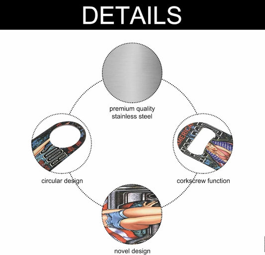 Hot Rod Pin Up Girl Stainless Steel Bottle Opener Young Sexy Woman Sit on Rods with American Flag Flat Beer Bottle Opener Keychain for Home Kitchen Bar Restaurant Party Birthday Gift