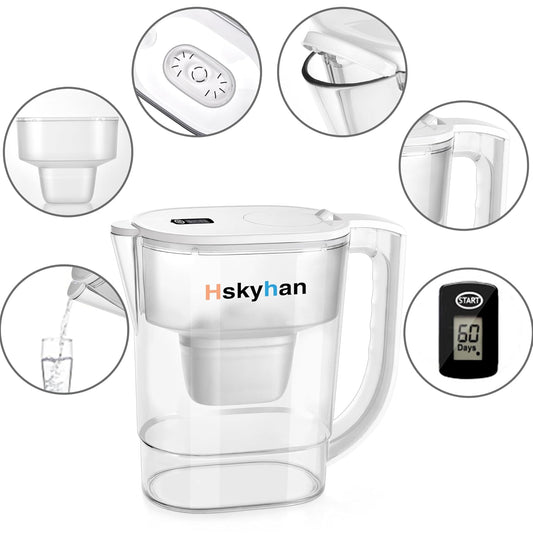 Hskyhan Water Filter Pitcher Alkaline - 3.5 Liters Improve PH, 2 Filters Included, BPA Free, 7 Stage Filteration System to Purifier, White