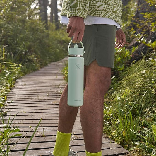 Hydro Flask Water Bottle - Insulated Stainless Steel - Wide Mouth Flex Straw Lid, Non Spill, Leakproof and Refillable in 24 Oz Aloe Green