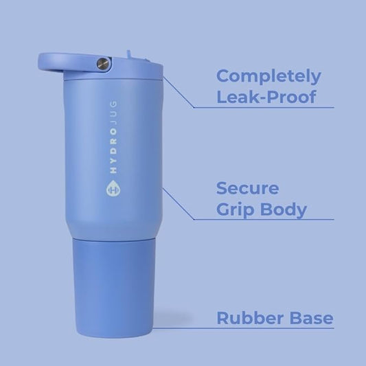 HydroJug Sport - Stainless Steel Tumbler with Straw, Vacuum Insulated, 20oz Leakproof Water Bottle, Ergonomic Design, Reusable, Dishwasher Safe, Rubber Base, Durable for Gym or Outdoors, Light Blue