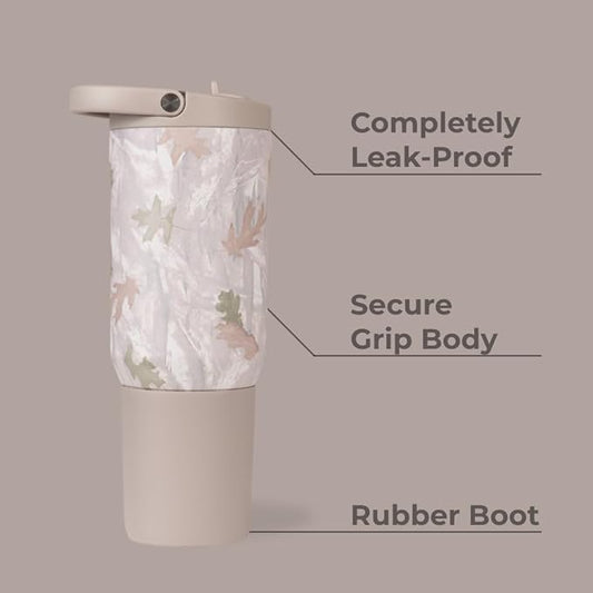 HydroJug Sport - Stainless Steel Tumbler with Straw, Vacuum Insulated, 20oz Leakproof Water Bottle, Ergonomic Design, Reusable, Dishwasher Safe, Rubber Base, Durable for Gym or Outdoors, Camo