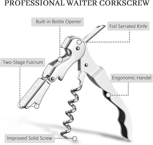 HYZ 2-Pack Wine Opener Waiter Corkscrew, Professional Wine Key for Servers, Bartender with Foil Cutter, Manual Wine Bottle Opener Double Hinged (White)