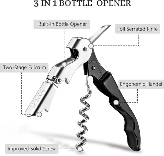 HYZ 2-Pack Wine Opener Waiter Corkscrew, Professional Wine Key for Servers, Bartender, with Foil Cutter, Manual Wine Bottle Opener Double Hinged (Black)