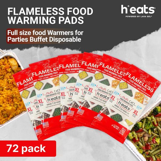 H°eats Flameless Food Warming Pads (72-Pack) - Full Size Food Warmers for Parties Buffet - Party Buffet Servers and Warmers - Heating Pads for Chafing Dish - Must-Have Catering Supplies