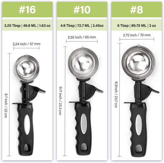 Ice Cream Scoop Set, Cookie Scoop set of 3, 3.25 Tbsp/ 4.9 Tbsp / 6 Tbsp Ice Cream Spoon with Trigger, Cookie Dough Scoop, Portion Scoop 1.63 oz, 2.45 oz, 3oz