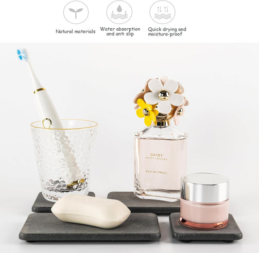 2 Pcs Water Absorbing Stone Trays, Kitchen/Bathroom Sink Soap Dish, Diatomite Tray Used for Hand Soap & Cosmetic Bottles in The Modern Home, 3.15" W x 6.3" L, Dark Gray