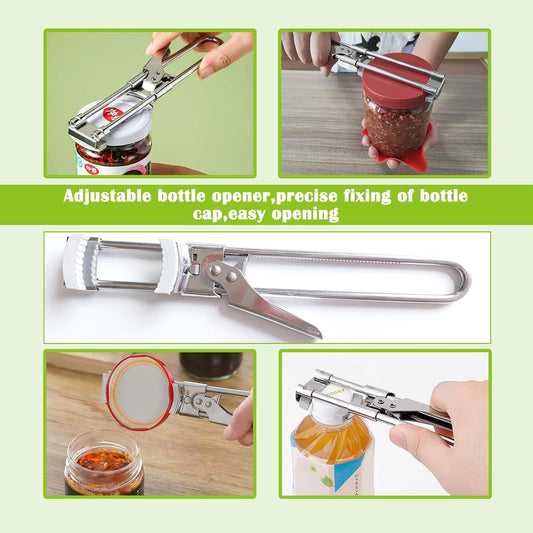 Jar Opener for Weak Hands, Adjustable Multifunctional Stainless Steel Can Opener Jar Lid Gripper With non-slip module, Removes Tight Jar Lid for Seniors with Arthritis, Manual, Kitchen Accessories