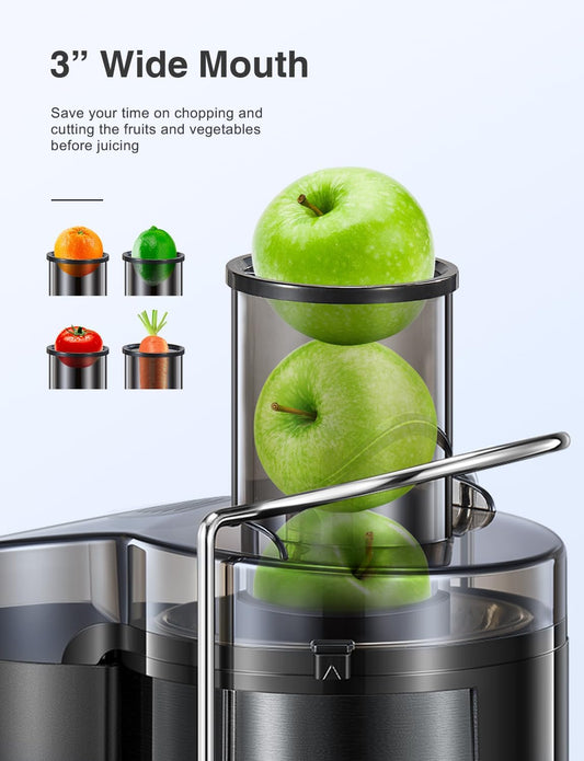 Juicer Machine, 800W Centrifugal Juicer Extractor with Wide Mouth 3” Feed Chute for Fruit Vegetable, Easy to Clean, Stainless Steel, BPA-free (Metallic Black)