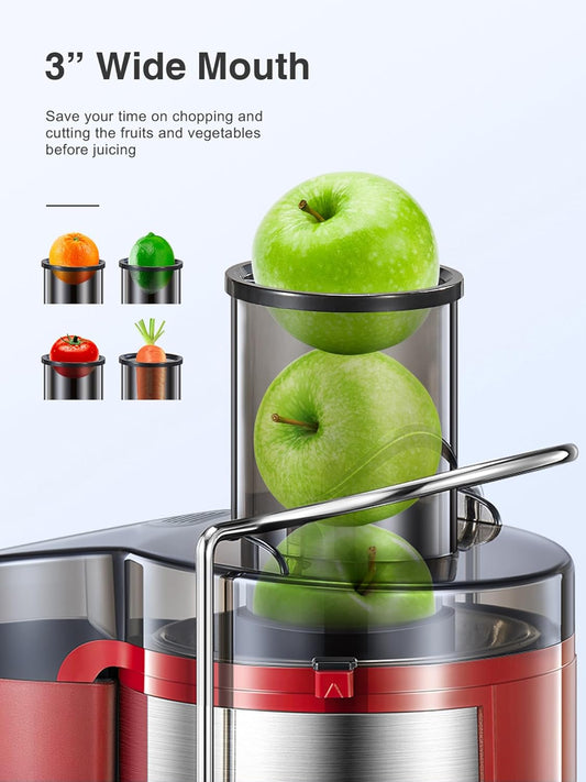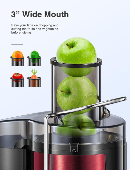 Juicer Machine, 800W Centrifugal Juicer Extractor with Wide Mouth 3” Feed Chute for Fruit Vegetable, Easy to Clean, Stainless Steel, BPA-free (Metallic Red)