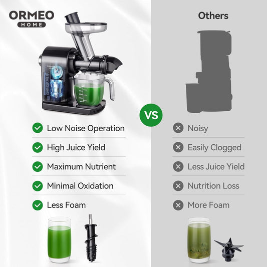Juicer Machines,ORMEO HOME Cold Press Juicer with Single Knob Control,3.60"Large Feed Chute For Vegetable and Fruit,Masticating Juicers Easy to Clean,BPA-Free,High Juice Yield (Black)