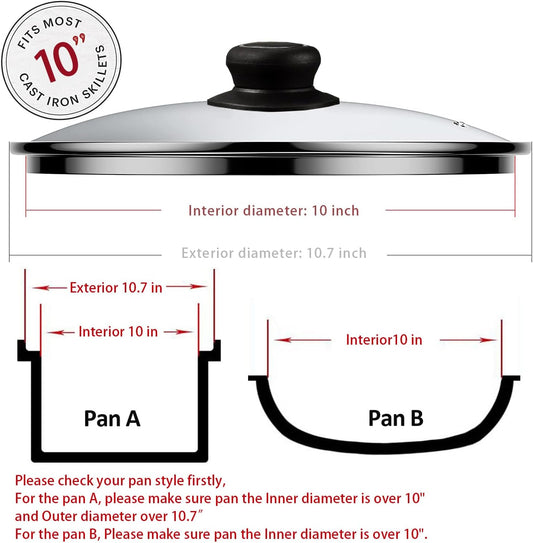 10 Inch Pan Lid Replacement Glass Lid for Pans, Pots, Skillets and Cast Iron, Clear, 1 Set