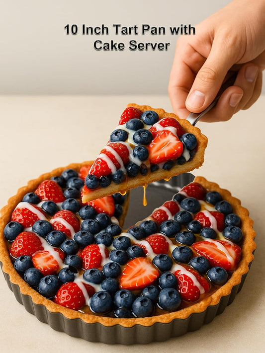 10 Inch Nonstick Tart Pan with Removable Bottom, Carbon Steel Quiche and Pie Pan- 1.1-Inch Depth, Fluted Edges for Baking Tarts, Quiches, Mousse Cakes, and Desserts