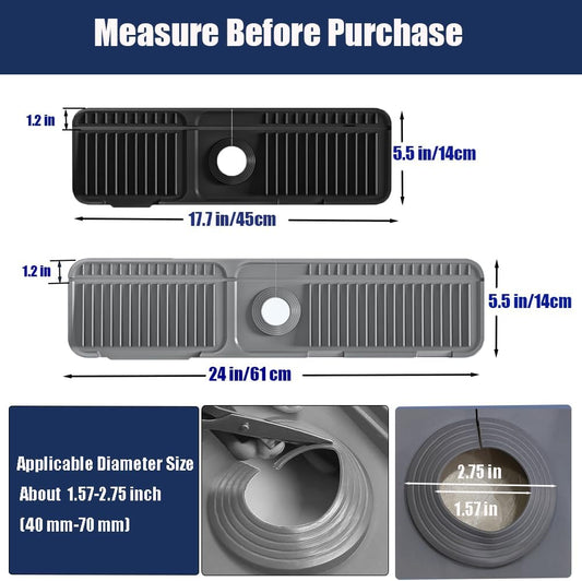 24" Silicone Faucet Mat for Kitchen Sink,Folding Sink Splash Guard Behind Faucet,Fasten Button & 6° Slope Design Faucet Drain Mat for Kitchen and Bathroom,Faucet Draining Mat(Gray)
