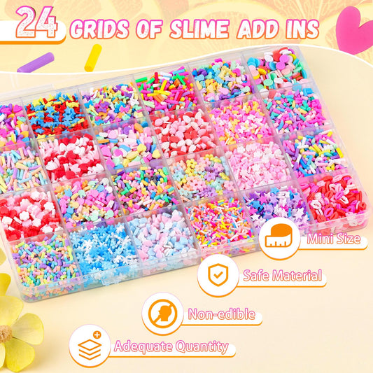 24-Grid Slime Mix Ins Non-edible Polymer Clay Slime Add Ins|Fake Sprinkles Kawaii Charms for Nail Art Design,Lip Gloss,Cellphone Decorations Assorted Sprinkle Decoration & Accessories for DIY Crafting