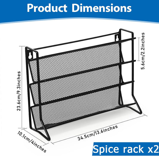 2PCS 4Tier Spice Rack for Counter Free Standing,Spice Rack for Inside Cupboard Hanging Wall Mounted Spice Seasoning Organiser Spice Jars Bottle Organizer for Kitchen Pantry(Black)