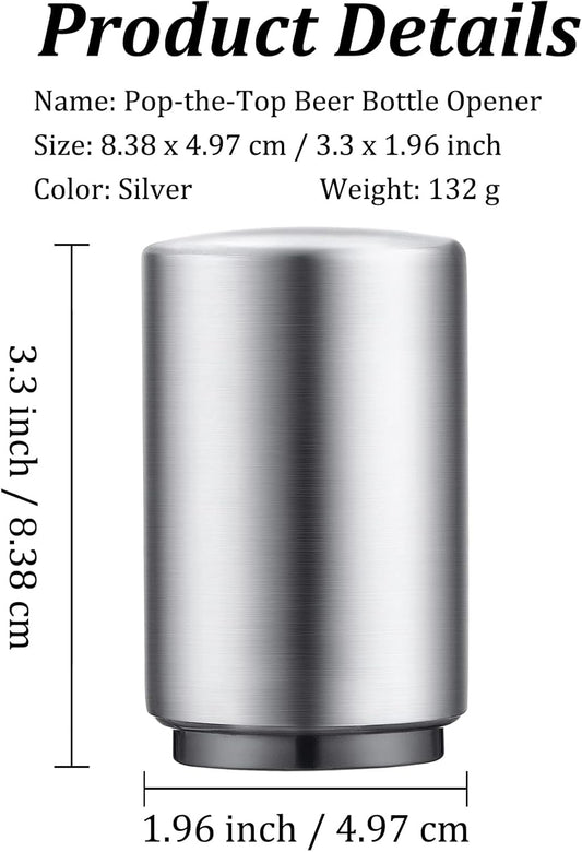2PCS Premium Beer Bottle Opener, Automatic Stainless Steel Quick Pop the Top Can Openers by Magnet Catching No Damage Caps, Wine Accessory Push Down Off Magnetic Bartender Tool for Home Picnic Camping