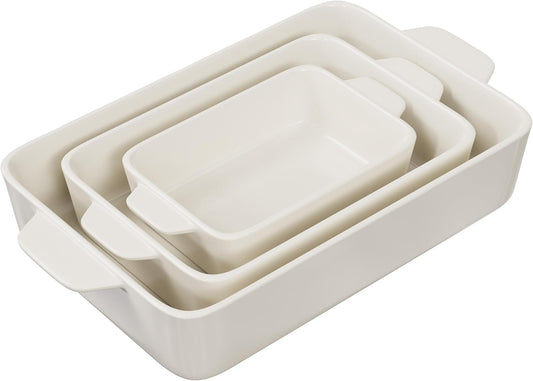 DOWAN Casserole Dishes for Oven, Baking Dishes Set, Ceramic Bakeware Sets of 3, Lasagna Pan Deep, Rectangular Baking Pan Set with Handles for Baking, Casserole, Kitchen, Wedding Gift, White (13''/8''/4'')