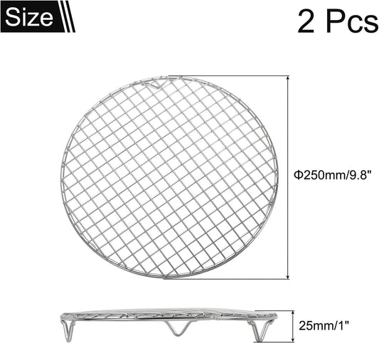 uxcell 2 Pcs Round Cooking Rack with Legs, Dia 9.8 Inch 304 Stainless Steel Barbecue Grill for Cooking Baking Barbecue Air Fryer Racks, Silver