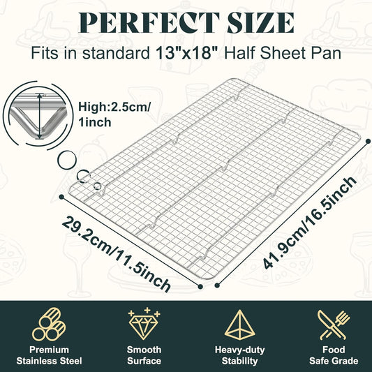 Cooling Racks for Cooking and Baking-11.5"x16.5" Oven Safe Premium Stainless Steel Heavy Duty Baking Rack Tight-Wire, Fits Half Sheet Pan for Roasting & Grilling & Cooking-Set of 2