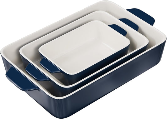 Kook Casserole Dish, Ceramic Baking Dish, Large Lasagna Pan Deep for Oven, 8.5 x 14, 11 x 7, 8 x 5, Set of 3, 92oz, 50oz, 20oz, Baking Pan with Handles, Oven Safe and Durable, Home, Gift, (Navy)