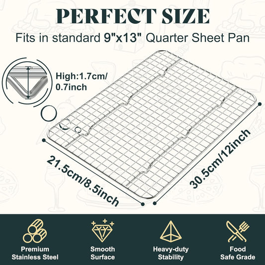 Cooling Racks for Cooking and Baking-8.5"x12" Oven Safe Premium Stainless Steel Heavy Duty Baking Rack Tight-Wire, Fits Quarter Sheet Pan for Roasting & Grilling & Cooking-Set of 2