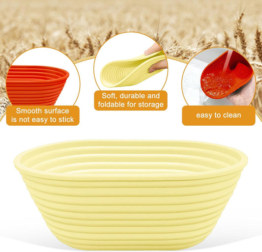 Silicone Banneton, Sourdough Bread Baskets (Set of 6, 6.5 Inch), Oval Proofing Bread Bowls with Starter Kit, Bread Making Baking Supplies