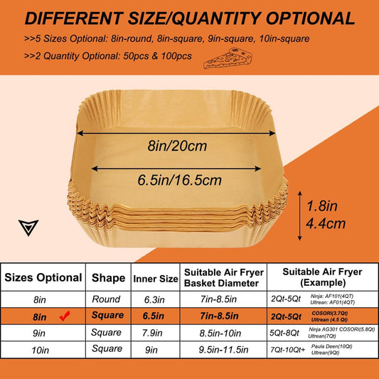 OAMCEG Air Fryer Disposable Liners,240 PCS Square Non-stick Disposable Liners for 5-8QT, 8 inch Air Fryer Parchment Baking Paper for Frying, Baking, Cooking, Roasting and Microwave