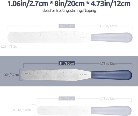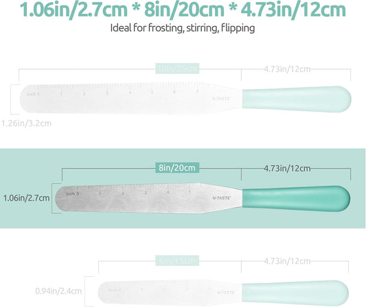 U-Taste Cake Icing Spatulas Set: Straight Decorating Frosting Knife with 6", 8", 10" Thinner Stainless Steel Blade, Flexible Smoothing Spreading Tools with Comfortable PP Handle for Cream (Aqua Sky)