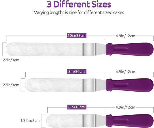 Icing Spatula, U-Taste Offset Spatula Set with 6", 8", 10" Blade, 18/0 Stainless Steel with PP Plastic Handle Angled Cake Decorating Frosting Spatula Set of 3 (Purple)