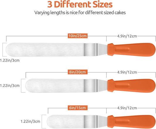 Icing Spatula, U-Taste Offset Spatula Set with 6", 8", 10" Blade,Stainless Steel Angled Cake Decorating Frosting Spatula Set of 3 (Orange)