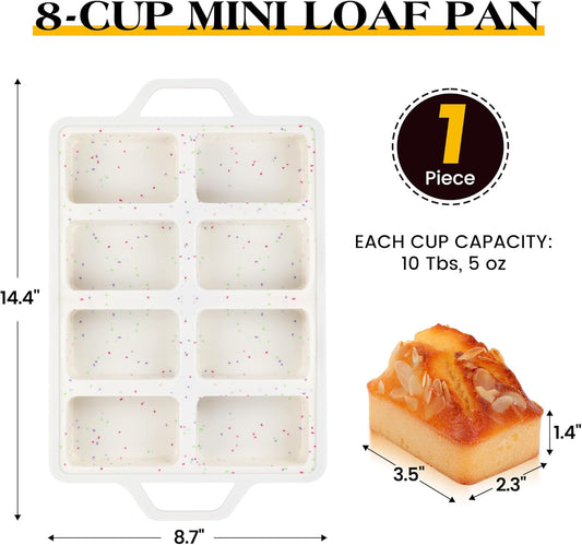 1 Pc Mini Loaf Pans Silicone, Nonstick Small Bread Pans for Baking, Tiny Meatloaf Pan with Metal Reinforced Frame 8 Cavity (Cream)