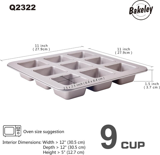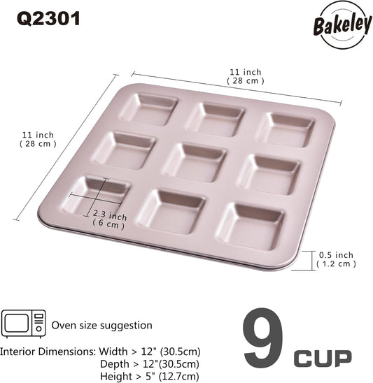 Brownie Cake Pan, 9-Cavity Non-Stick Square Muffin Pan Blondie Bakeware for Oven Baking (Champagne Gold)
