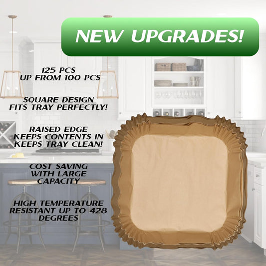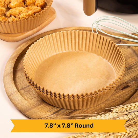 Air Fryer Liners Disposable – 125 pk 8" Unbleached Non-Stick Parchment Paper, Fits 5-8 QT Basket, Air Fryer Liners | Airfryer Liners