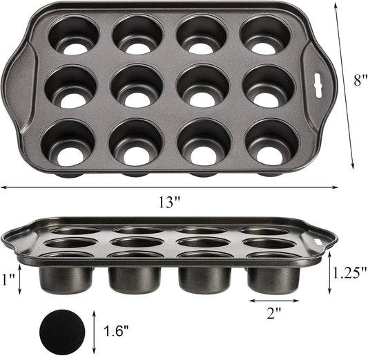 Muffin Cake Pan, 12-Cavity Non-Stick Cupcake Pan Bakeware for Oven Baking Set of 2 (Champagne Gold)