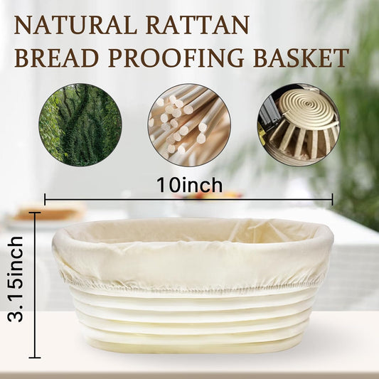 Banneton Bread Proofing Basket: 2 PCS Sourdough Proofing Basket with Liner - Oval Banneton Basket for Baking