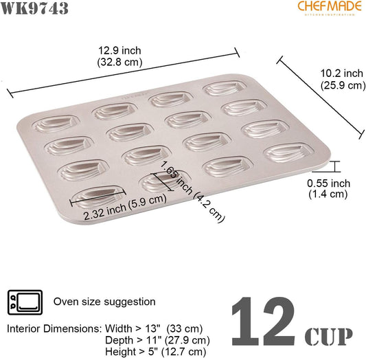 CHEFMADE Madeleine Mold Cake Pan, 12-Cavity Non-Stick Oval Shell Madeline Bakeware for Oven Baking (Champagne Gold)