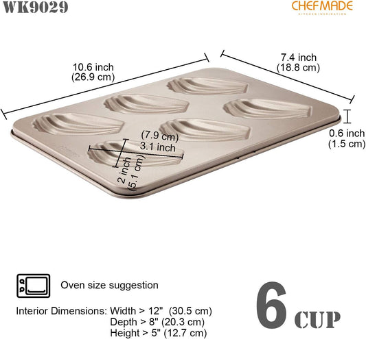 CHEFMADE Madeleine Mold Cake Pan, 6-Cavity Non-Stick Oval Shell Madeline Bakeware for Oven Baking (Champagne Gold)