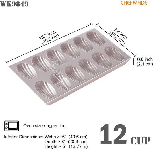 CHEFMADE Madeleine Mold Cake Pan, 12-Cavity Non-Stick Scallop Madeline Bakeware for Oven Baking (Champagne Gold)