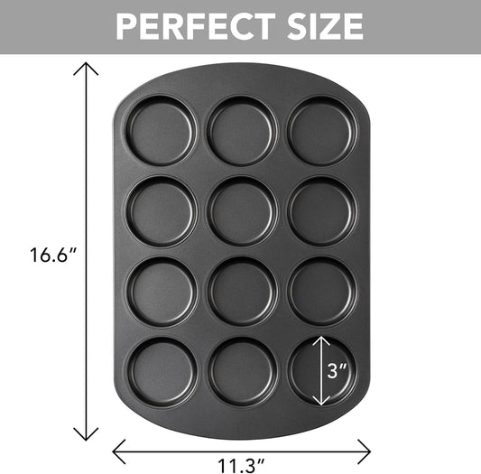 Tiawudi Muffin Top Pan, 12 Cavity Cupcake Pan, 3 Inch Nonstick Bakeware for Eggs, Cornbread, Cookies, Whoopie Pies and Yorkshire Pudding, Set of 2