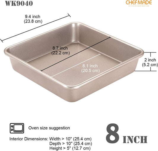 CHEFMADE 9-Inch Square Cake Pan, Non-Stick Deep Dish Bakeware for Oven Baking (Champagne Gold)