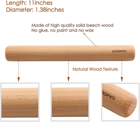 GOBAM Wood Rolling Pin, Small - Dough Roller for Pasta, Cookies, Pie, Pizza, Chapati, Fondant, Rolling Pins for Baking, Bread Making Tools and Supplies - 11 x 1.38 Inches