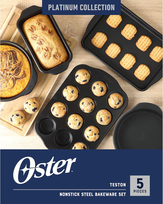 Oster Teston 5 Piece Carbon Steel Baking Pans Bakeware Set w/Premium PFA Free Nonstick - Matte Black