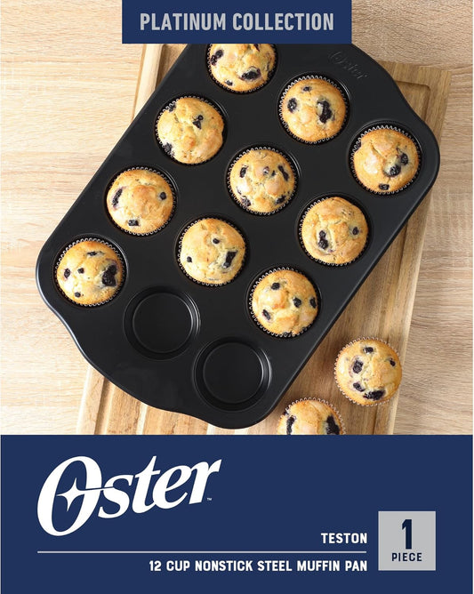 Oster Teston 12 Cup Nonstick Carbon Steel Muffin/Cupcake Baking Pan - Matte Black