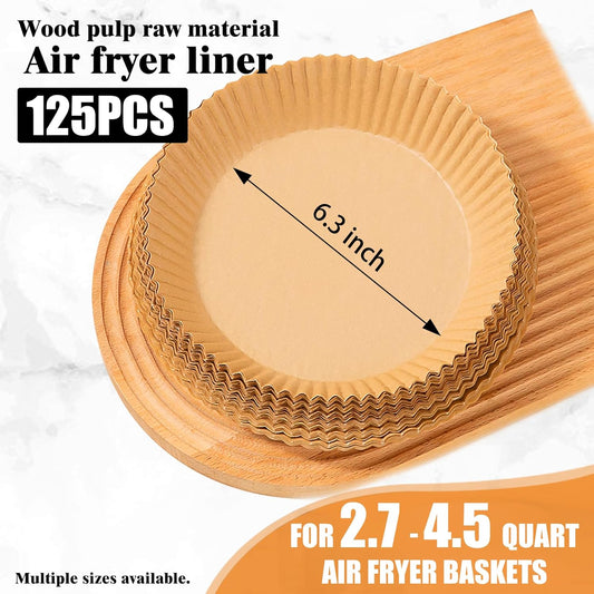 Air Fryer Disposable Paper Liners for Ninja AF101, 125 Pcs Round Parchment Cooking Liner for Airfryer, Microwave Oven, Frying Pan, 6.3 Inch Oil-proof Filters Sheets for 2 3 4 4.5 Qt Baking Basket