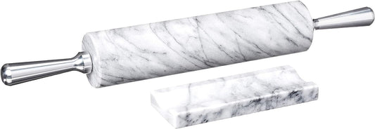 Fox Run 8648 Marble Rolling Pin and Base with Aluminum Handles, 2.5 x 17.5 x 3 inches, White
