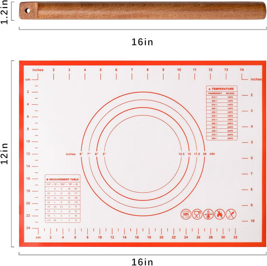 Marble Rolling Pin with Pastry Baking Mat and Stainless Steel Dough Cutter, 18.5” (Includes handle) Rolling Pin for Baking Cookie Crust Crisp Pizza with 3 Thickness Rings and Wood Stand