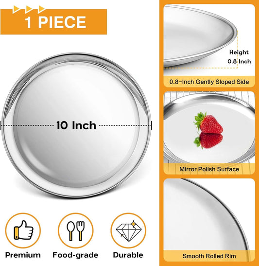P&P CHEF 10 Inch Pizza Pan, Stainless Steel Round Pizza Tray Baking Pans, Pizzas Plate Serving Tray for Cookie Meat, Oven & Dishwasher Safe & Easy Cleaning, (Mirror Finish) - 4 Pieces